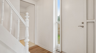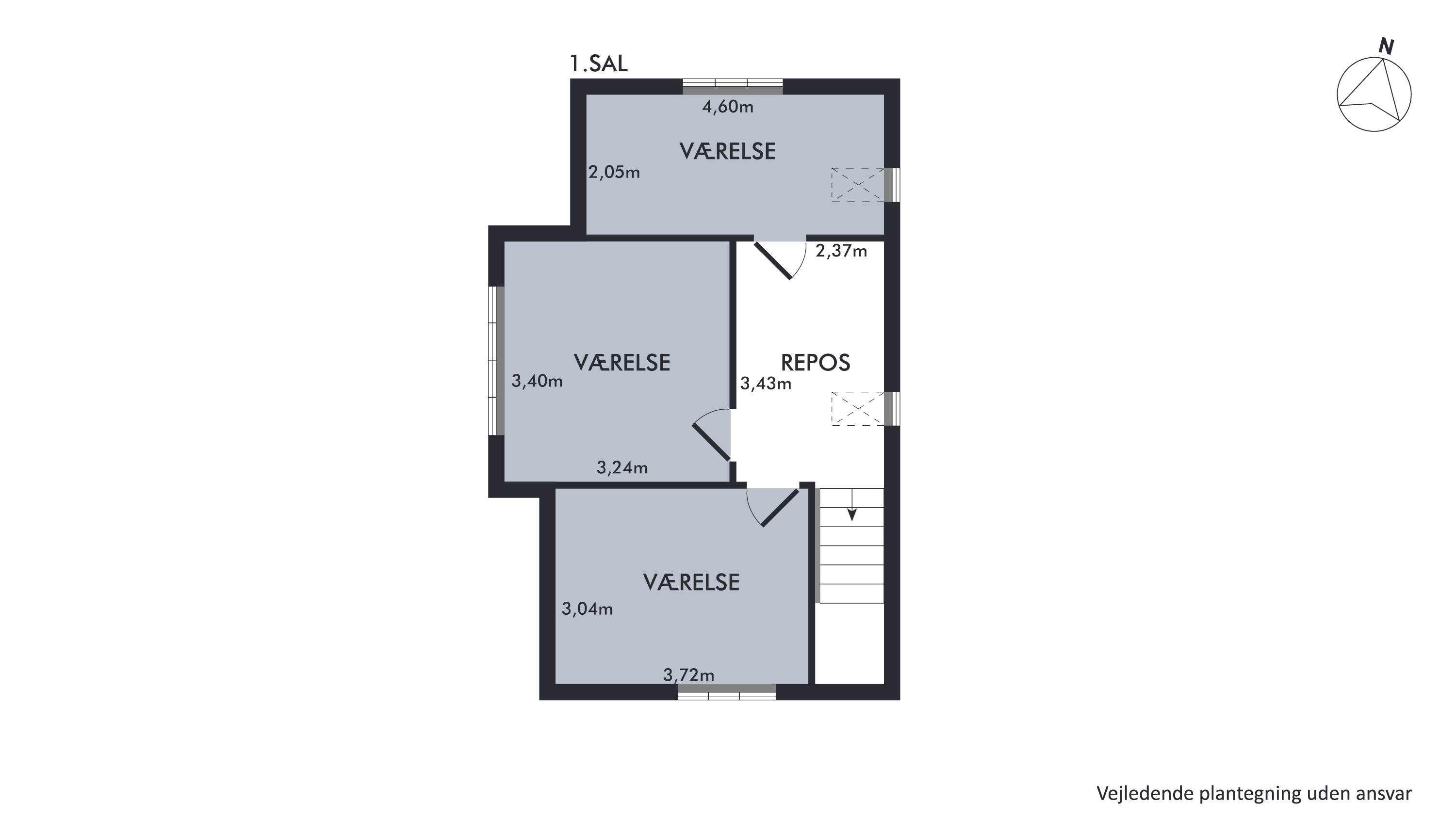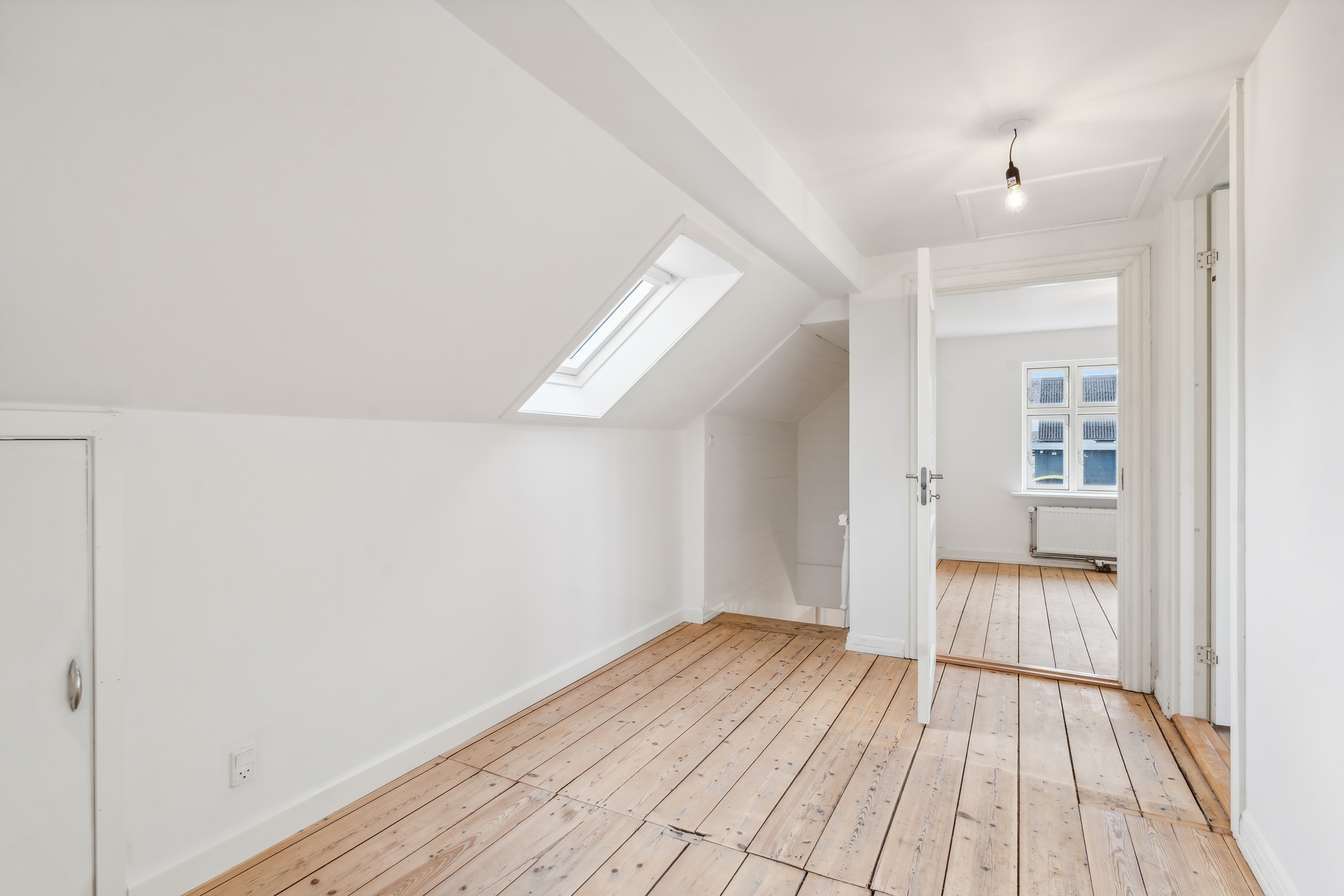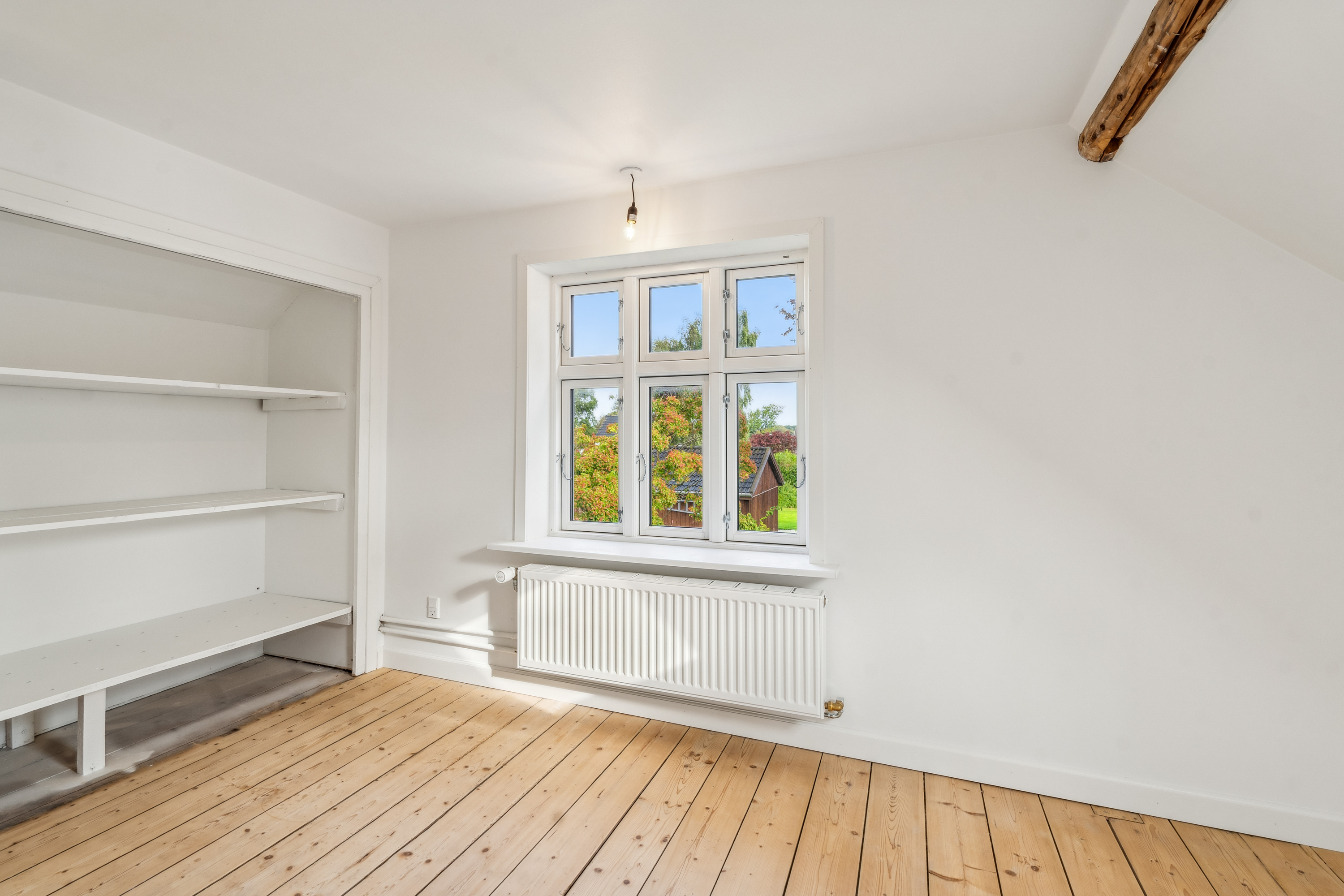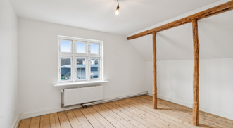 ✅ Tre rummelige værelser på 1. sal – ét med fritliggende spær
