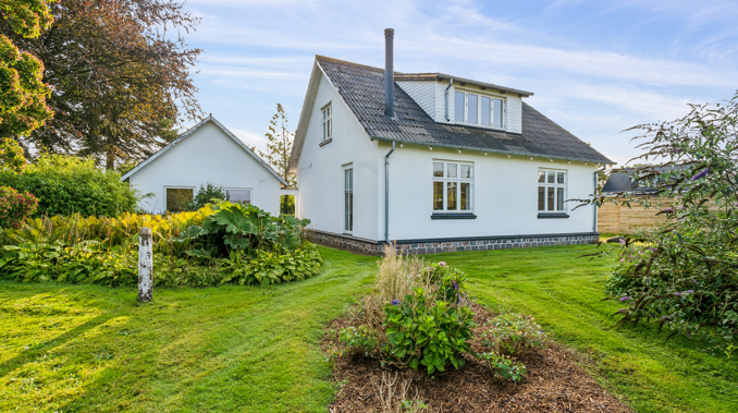 Denne charmerende ejendom fra 1917 er nænsomt moderniseret og rummer 138 m² bolig på en grund på 1.064 m² – med mulighed for tilkøb af ekstra 725 m² nabogrund, som kan bruges til fx større have, køkkenhave eller ekstra uderum.